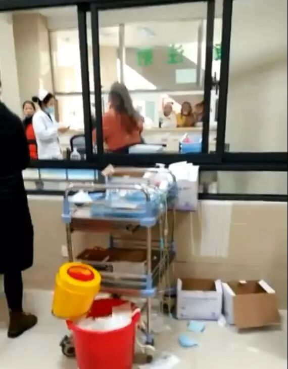 根据现场视频,这名母亲松手后还在大骂,并一脚踹开配药室的门,冲进去理论,要求找医生、找院长,并打电话给其家属过来。