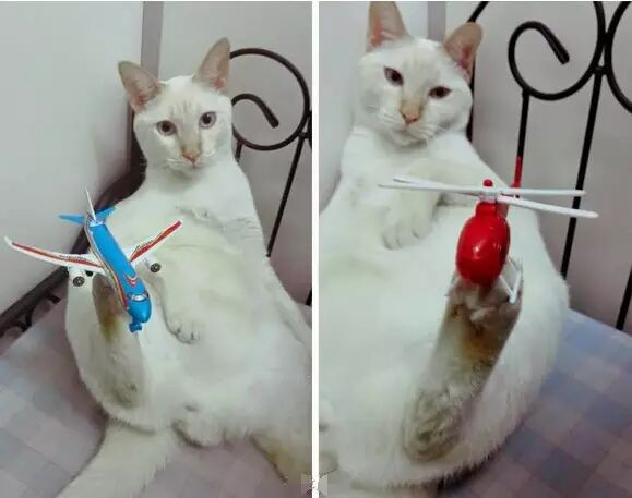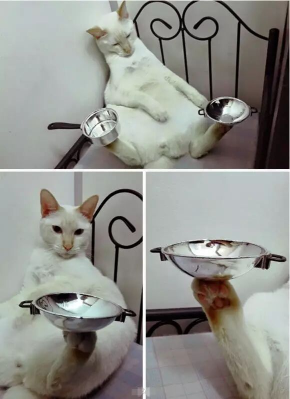 脑洞大开的主人,突发奇想找了两个玩具搁在了猫脚上。Gaigaiwuwu 竟然若无其事地顶了起来!