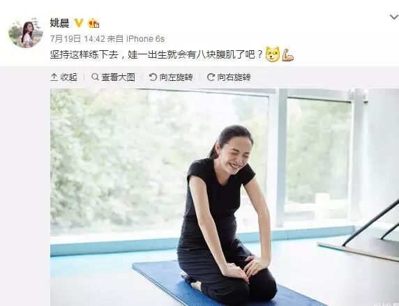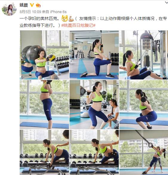 怀着二胎的姚晨还顶着5个月的大肚子健身