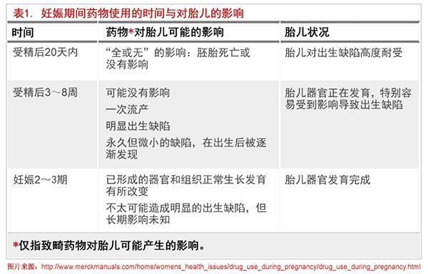 许多准妈妈在怀孕期间都特别担心药物对胎儿产生影响。但实际上可以导致胎儿出生缺陷的药物只占少数(约2%~3%),大部分药物对胎儿没有明显影响,而且服药对胎儿的影响与胎儿在子宫内暴露药物的时间相关。