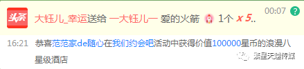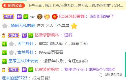 大钰儿刚开播,幸运就送上火箭五连击,成功的把直播间人气瞬间提到一万多人,房间里的宝宝们好心提醒今天繁星有活动,送新年套礼能抢红包,送新年快乐有红包雨可以领,幸运就开启了无限送的模式,最后总结:繁星扣的跟驴一样,没幻想了!