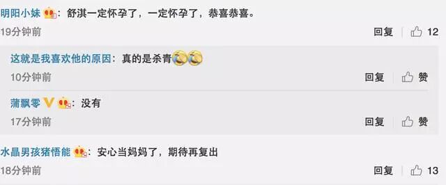 网友留言:“舒淇一定是怀孕了,一定怀孕了!恭喜恭喜!”、“安心当妈妈,期待再复出!”