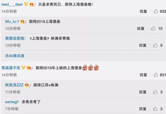 随后网友们纷纷表示:“只是杀青而已,期待上海堡垒哦!”