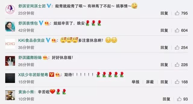 舒淇的评论已关闭,但官网发布人留言:“杀青就杀青了呗,有神马了不起,搞事情~”还有不少人表示:“那就好好休息!”