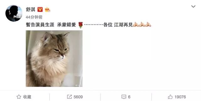 12月5日深夜,舒淇发文:“暂告演员生涯,承蒙错爱......各位,江湖再见”。瞬间引起网友热议。
