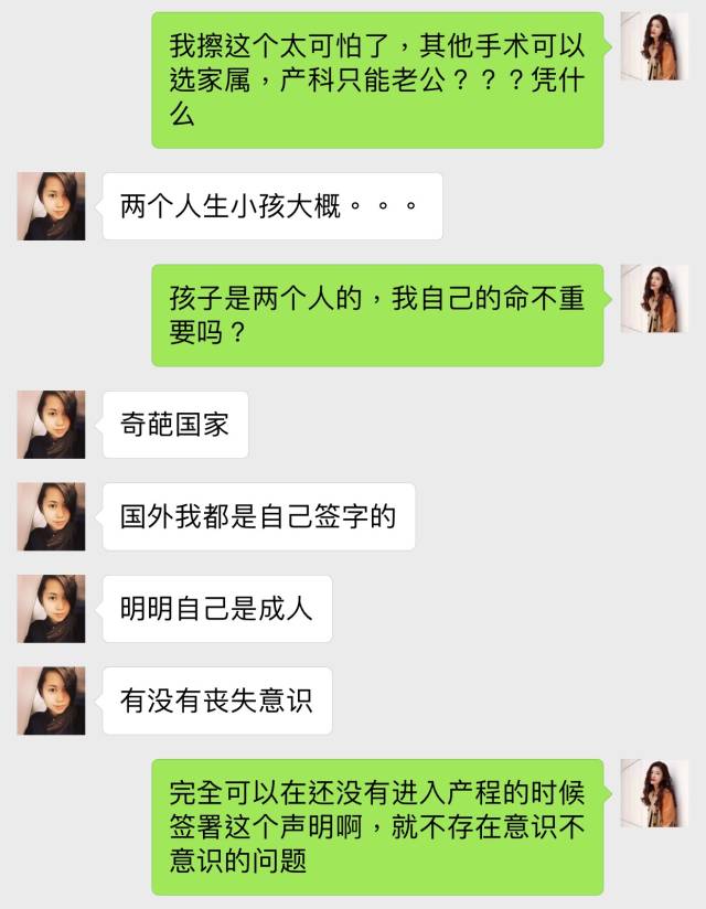 普通手术知情通知书上,我们可以自己签字对自己负责,也可以选定关系人。但是,奇葩的是,产科的第一关系人只能是配偶。别问为什么,我的女友:上海交大和霍普金斯港中大的双份医学博士、上海资深妇产科主任医师张婷的回答是这样的: