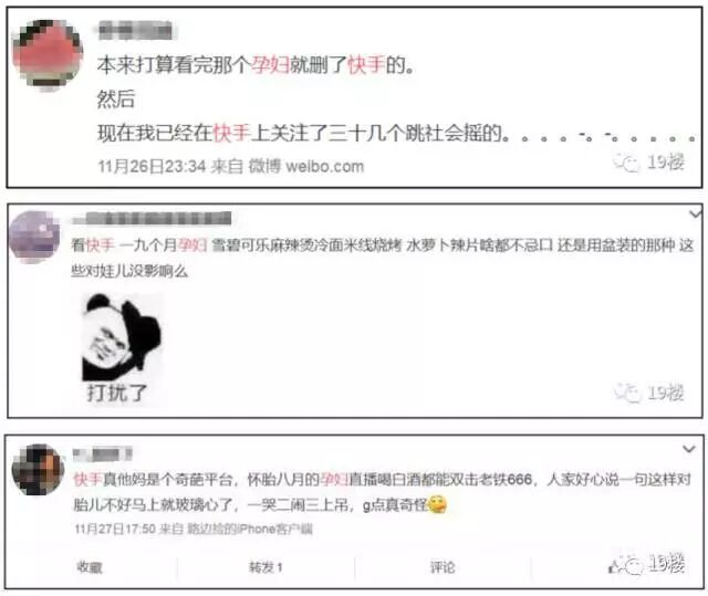 快手视频上的一名孕妇,在视频和直播中不断地显摆自己能吃能喝,啤酒、白酒、烧烤、麻辣烫各种吃喝。下面是网友截的部分“实锤图”: