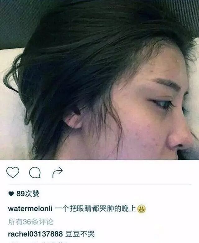 随后就在INS上po素颜照:一个把眼睛哭肿的晚上,同时关闭了微博账号。