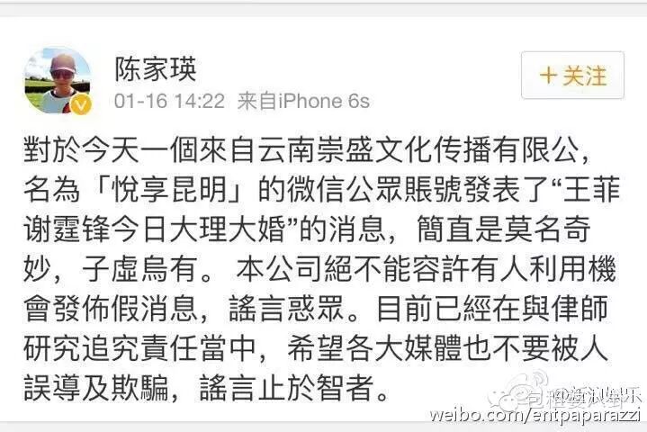种种现实因素摆在面前,因此每次传出二人结婚,谢霆锋的态度都是极力否认,而且用词是“乱七八糟的传闻”