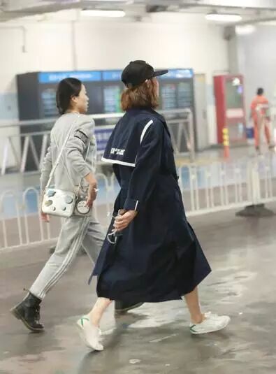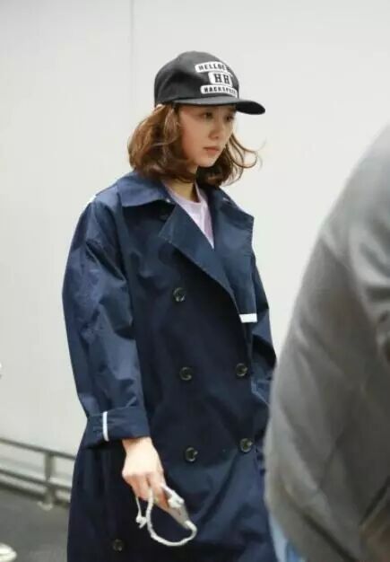 宽大的风衣就像一件硕大的大袍子,让刘诗诗看着非常娇小,衣服不是很合体,而且大风衣下面还配着一条牛仔热裤