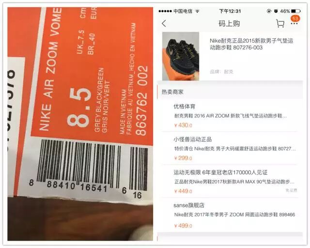 鞋盒二维码全部全部扫出来的是各个X猫大型运动专柜的鞋盒!