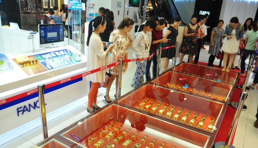 9月20日,湖北宜昌,一家购物中心用600块金砖铺成“黄金大道”,供前去消费购物的市民通行。据了解,这条黄金大道由总计600公斤金砖铺成,总价值约2亿元。“黄金大道”一亮相,便吸引了众多市民围观踩金。