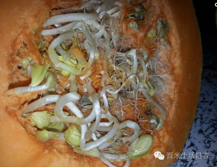 据农业专家介绍:“南瓜内长芽,只要果皮没有腐败,还是可以吃的。南瓜本身是有水分的,一旦有空气进入到果腔内,周围温度达到一定程度时,种子便有了长芽的条件。南瓜肚内长芽不常见,但也属于正常现象。”