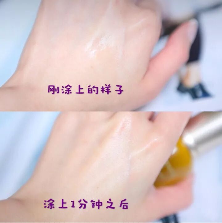 非常好推开,轻轻按摩就瞬间吸收。滋润程度和乳液类似,不会过于轻薄,也不会太过油腻厚重。之后皮肤感觉很润很软,有一种皮肤喝饱了水的感觉,而且一些小细纹也消失了,整体感觉很有光泽,皮肤的质感特别好。