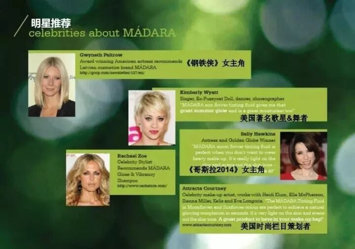 自MADARA玛德兰诞生伊始,品牌已风靡比利时,瑞士,德国,芬兰,英国,日本,瑞典,波兰,法国,葡萄牙,俄罗斯等三十多个国家与地区。位于北欧的全球旗舰店,拉脱维亚第一夫人也曾亲身莅临。好莱坞明星、时尚杂志多次推荐!
