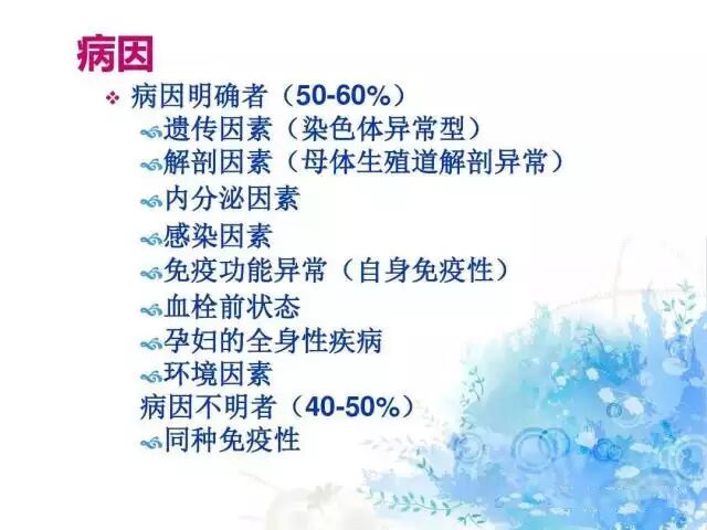 4.免疫因素。若母儿双方免疫不适应,则可引起母体对胚胎的排斥而致流产。
