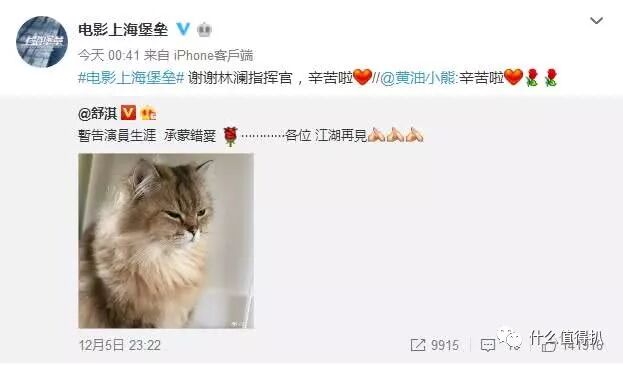 所以舒淇这个暂别娱乐圈其实是新戏杀青了?舒淇这段时间一直在上海和鹿晗一起拍摄《上海堡垒》,舒淇的微博中曾经宣传过这个电影。