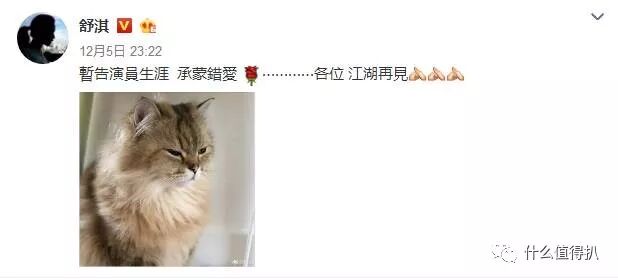 余文乐结婚的热度还没降下来,nili女神舒淇竟然深夜发文说:“暂告演员生涯 承蒙错爱······各位 江湖再见”