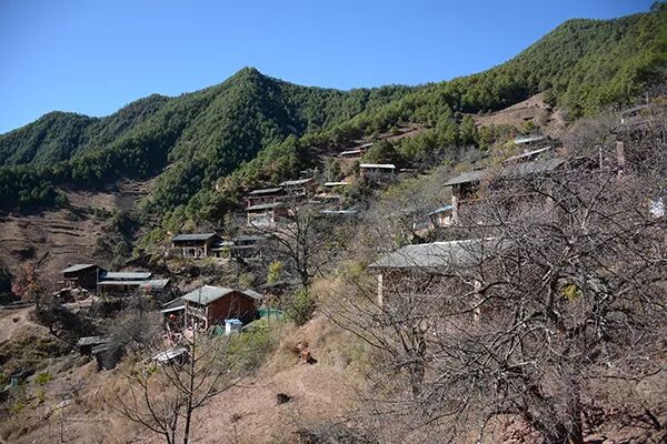 该村民小组总共住着50余户村民,这是一个看上去非常贫瘠的地方,一条窄窄的泥巴路,只能勉强通行摩托车和面包车。村民破旧的房屋散落建在五六十度的山坡上。房屋周围,收割后的玉米地里没再种其它作物,几头黄牛在里面悠闲地吃着干枯的玉米秆。女人和老人很多在院子里砍(剥)核桃,而年轻人、男人们大多无事可做,围在村口一张台球桌前消磨时光,这张台球桌是整个村子里除了摩托车之外,能看到的唯一现代化的东西。